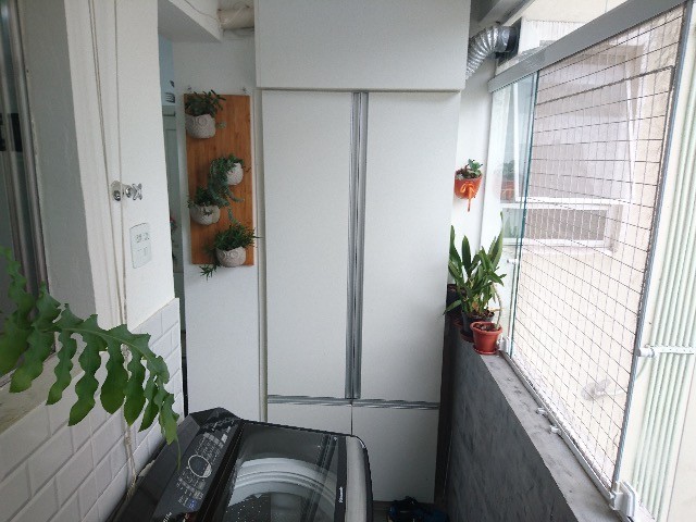 possui 02 banheiros, e wc de serviço, Cozinha e sala de jantar, (cozinha e wc com torneiras com água quente), Lavanderia ampla,